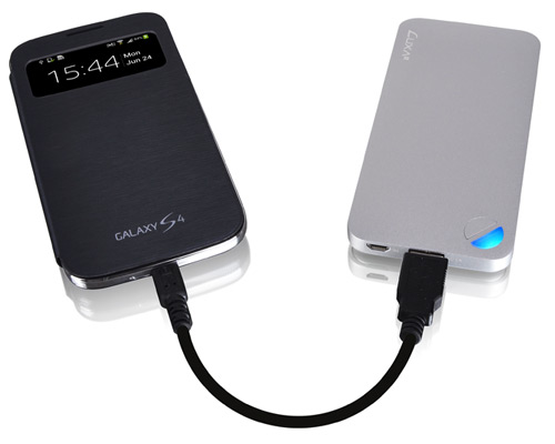 | High Capacity The 5000 mAh high capacity ultra slim battery pack has more than enough juice to charge your iPhone 2.3 times, and Samsung S4 1.3 times. |